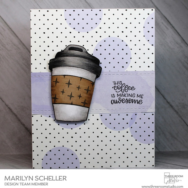 The cup was stamped, coloured with Copic markers and cut out. There's no dies for this set but it's got long clean lines and is easy to trim with scissors. The coffee sleeve was stamped onto kraft paper and cut out after adding some of the little gem stamps to it. The sentiment was stamped and pop up dots added to the back of the coffee cup to give it some dimension when placed down on the card.