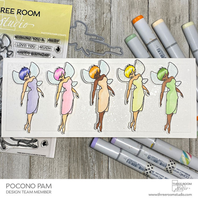Hola everyone! Happy Friday! I am Pocono Pam and today we are featuring the Believe in Fairies clear stamp and coordinating die sets.