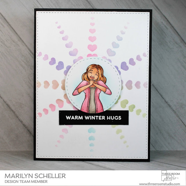 Marilyn here and welcome to Feature Friday at Three Room Studio Stamps where the new Heart Ray Full Stencil is highlighted today.