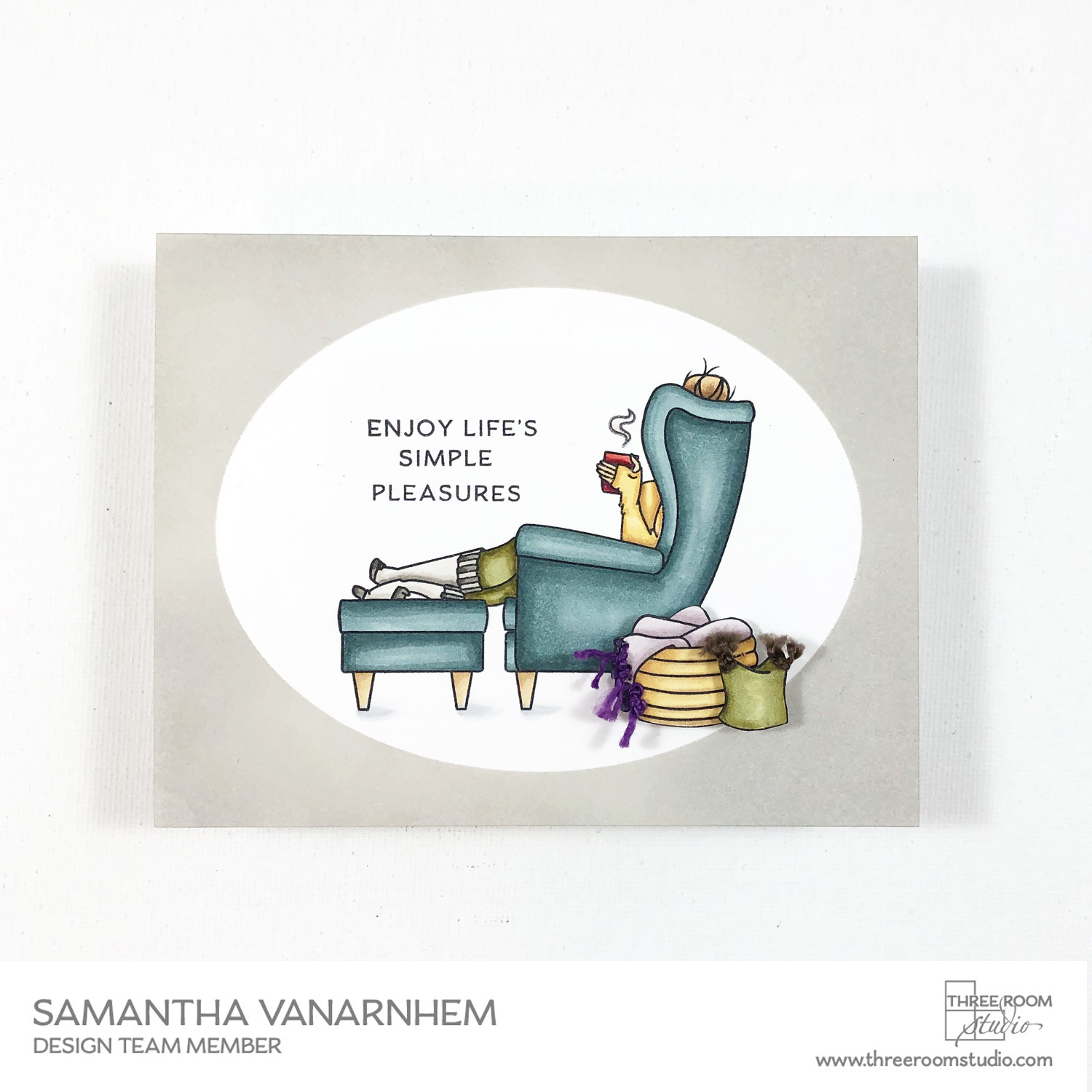 Welcome friends! Samantha here and I'm so excited to be featuring the Let's Hygge set for you today! If I had to pick a single favorite Three Room Studio image, it would be this lady in her chair, hands down. It's me (maybe I would be holding a book instead of a hot drink but very close).