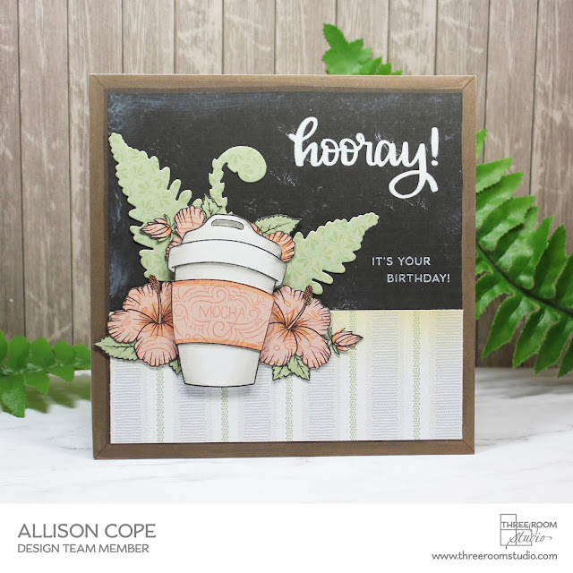 I needed a birthday card for someone special so I decided to go with a coffee and floral theme so I grabbed the "Awesome Coffee" and "Mom's Hibiscus" stamp sets plus the "Yay!" stamp set for my sentiments.