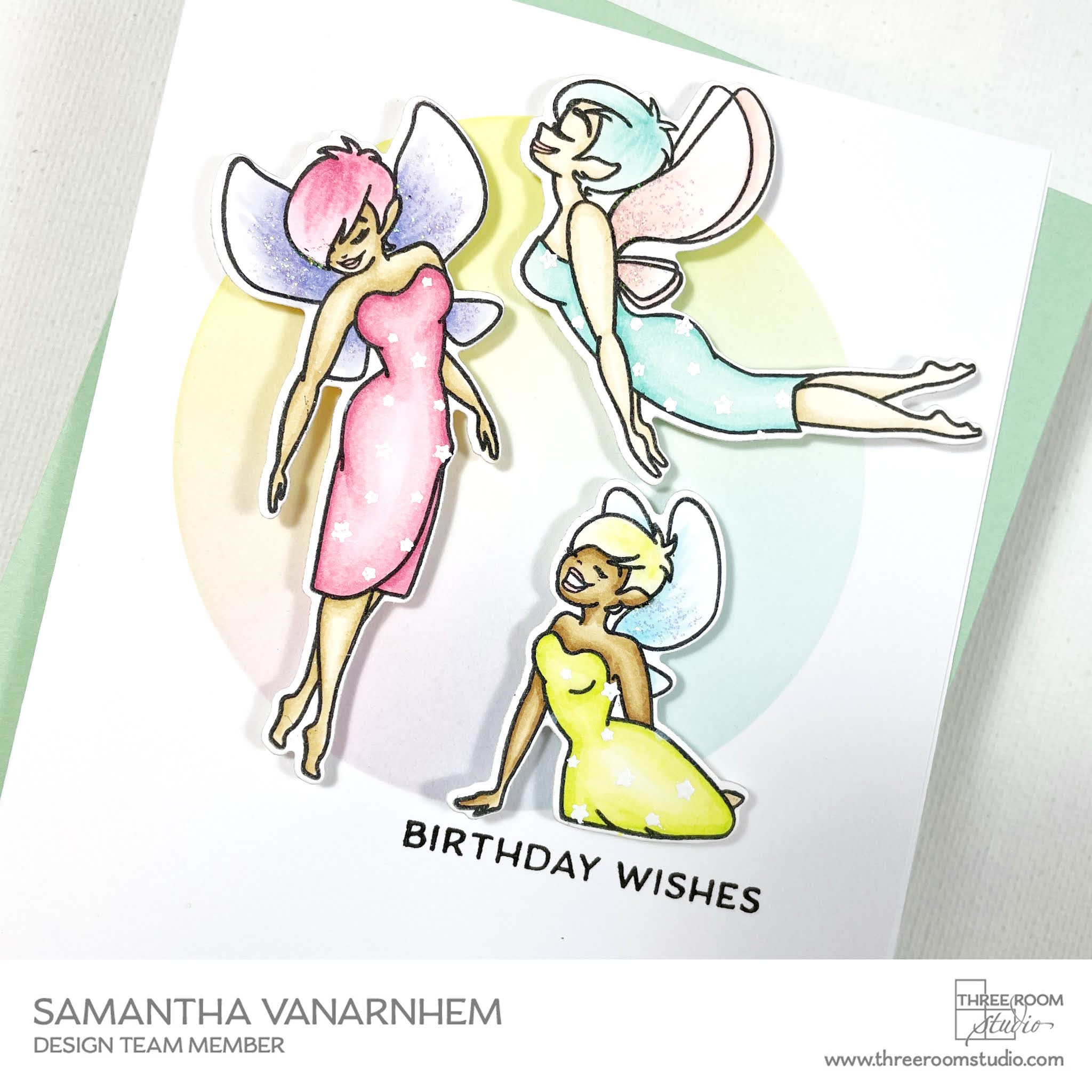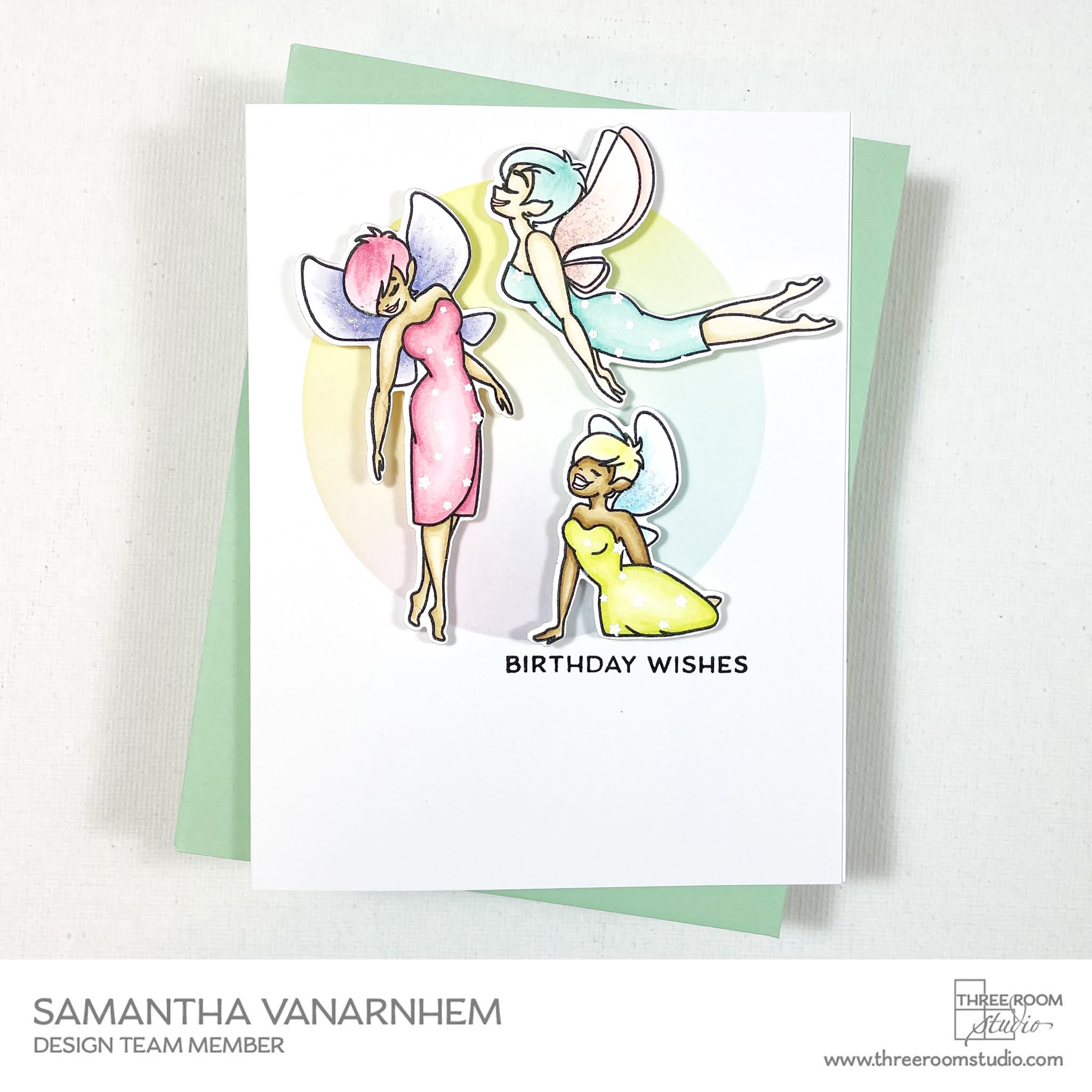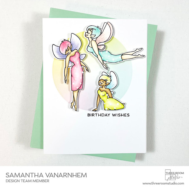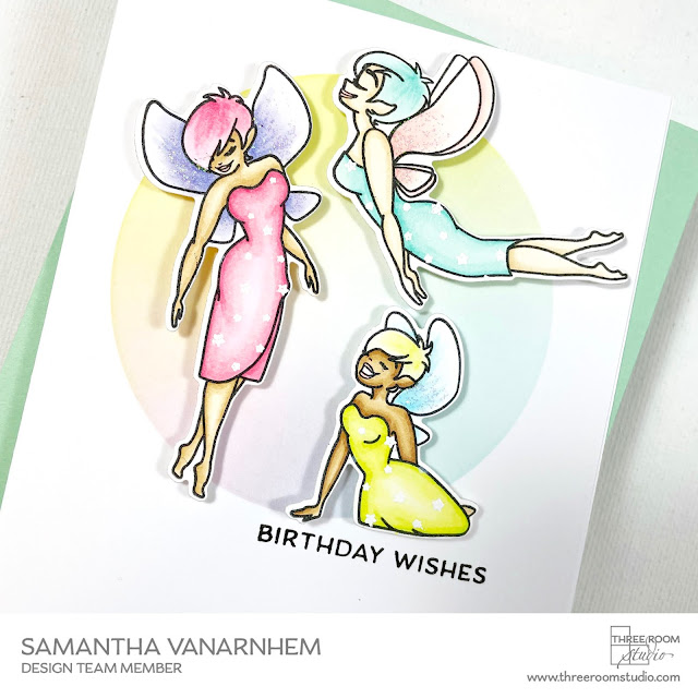 Three Room Studio doesn't have a specific Easter set but I was just looking for something with multiple similar images that I could pull some of these colors from and decided on the fairies from Believe in Fairies for my card:
