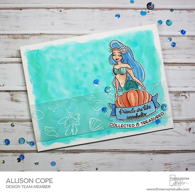 I even stamped the vellum paper with all the little shells and critters and embossed it with shimmery embossing powder!